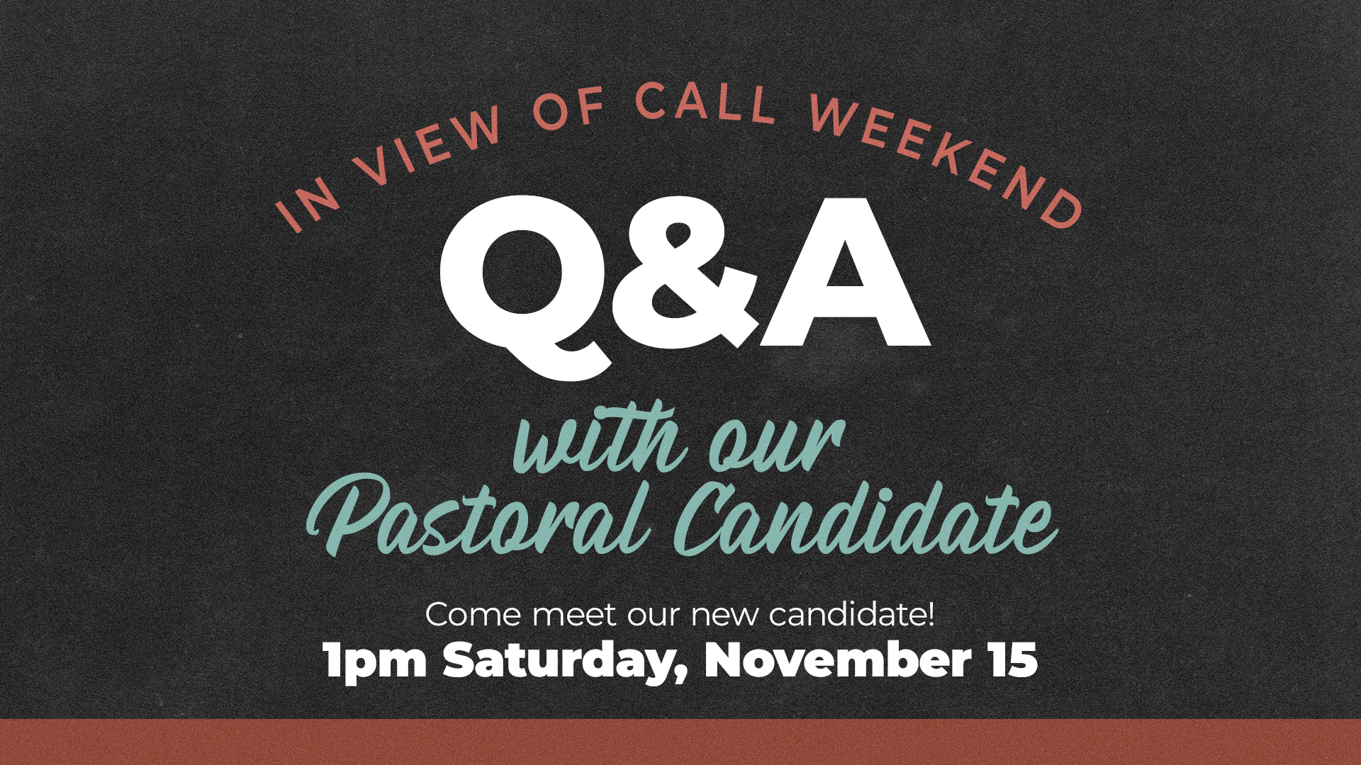 Meet & Greet + Q&A Saturday, November 15 | 1 PM | Loring Mill Campus Meet our pastor candidate and join us for a time of conversation and Q&A. In View of Call Sunday Sunday, November 16 | All Services at all Campuses Join us as our pastoral candidate delivers a sermon in all services….